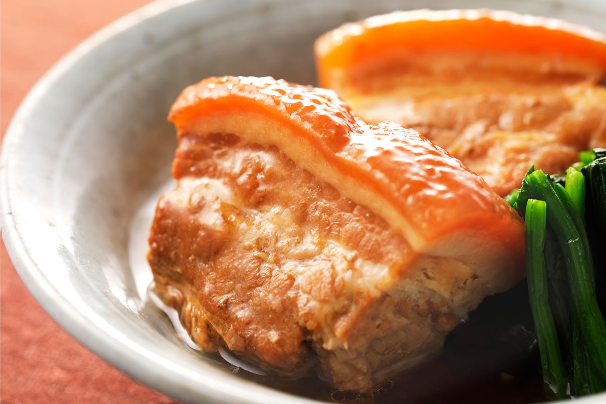 Den Schweinebauch in einem Topf mit Öl komplett bedecken. 2 Sternanis, 4 Pimentkörner und 20 Pfefferkörner zugeben und zugedeckt bei mittlerer Hitze ca. 3 Stunden confieren. Die Aubergine halbieren, kreuzförmig einritzen, mit Salz Pfeffer und Frischem Knoblauch Würzen und anschließend in Alufolie einpacken. Bei 130 grad ca 50 min im Ofen garen. Das Fruchtfleisch herauskratzen und mit dem Stabmixer zu einem feinen Püree mixen. Mit Zitronensaft , Salz und Zucker abschmecken.
