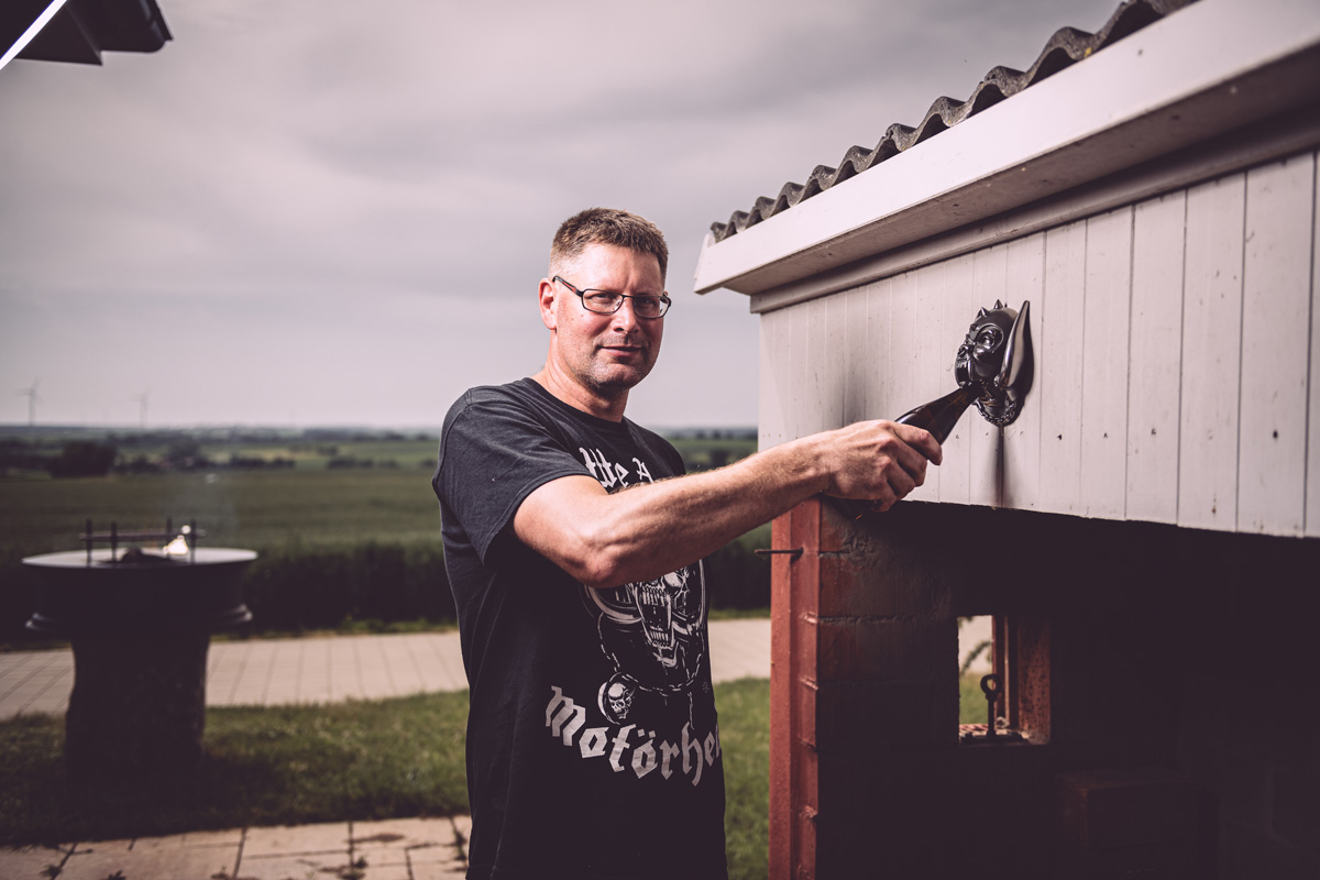 Überraschend ist da der Grill, der für größere Gesellschaften zum Einsatz kommt. Der ist nämlich selbst gemauert. Stein? Kein Stahl? Grundsätzlich schon, wäre da nicht das Wahrzeichen seiner Lieblingsband Motörhead angeschraubt. Aus Stahl, versteht sich. Als Flaschenöffner.
