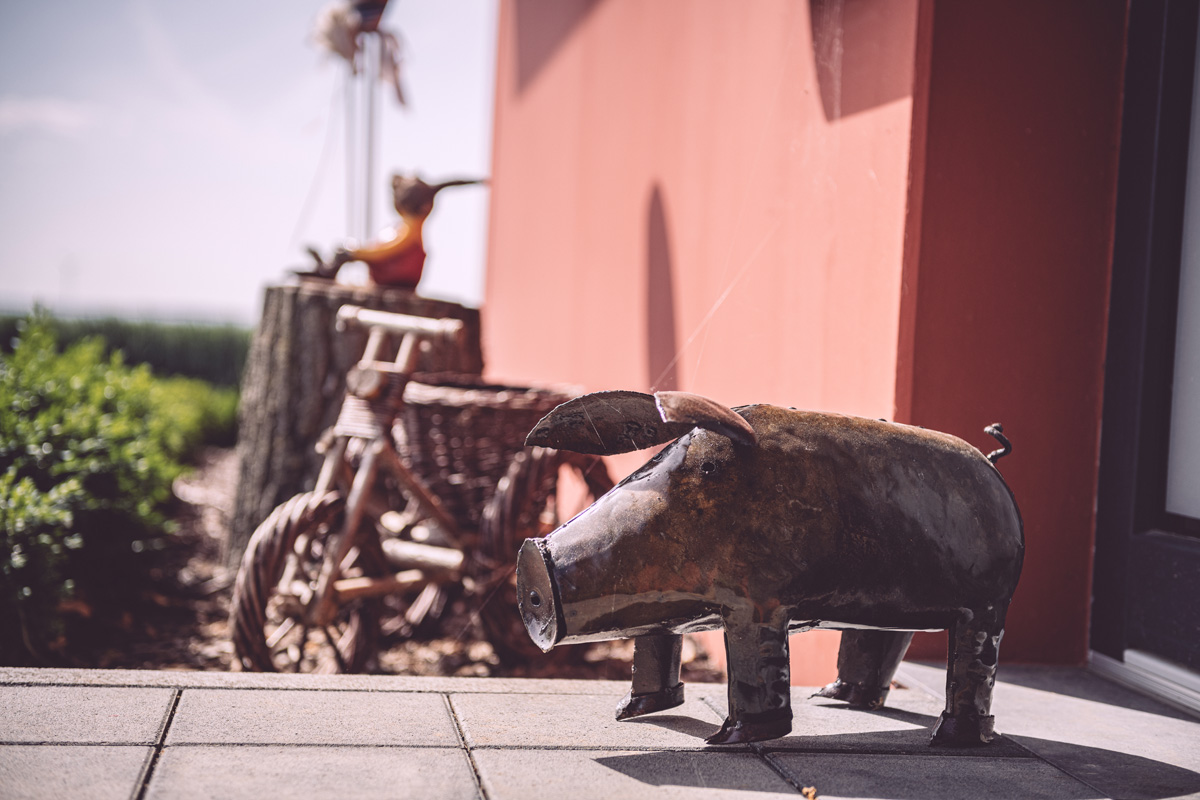Was die Ernährung betrifft, macht er auch vor dem Schweinestall nicht halt. Seine Schweine sind „Ringelschwänze“. Ein ebenfalls heiß diskutiertes Thema. Wissen wir doch, dass es bei unkupierten Schweinen dazu kommen kann, dass die Tiere sich gegenseitig an den Schwänzen knabbern und dies zu Entzündungen führt.
