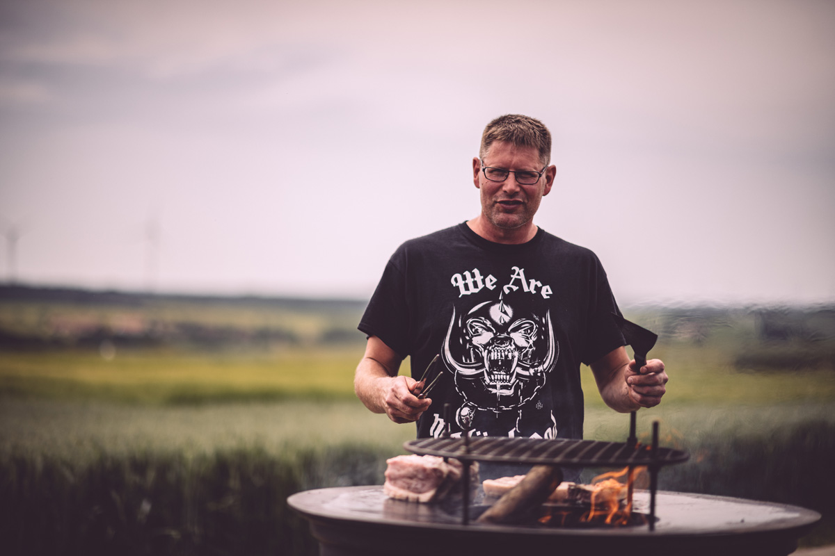 Markus Bender ist mit 14 Jahren während eines Schüleraustausches in England auf einem Motörhead-Konzert gewesen. Seitdem ist er infiziert. Mit dem Heavy Metal-Virus. So steht er dann vor uns und trägt ein Motörhead T-Shirt, weil er sich für unser Treffen noch schick machen wollte, wie er uns mitteilte. Und Metall und Stahl sind sowieso seine Leidenschaft. In Form von Grills und Smokern zum Beispiel. Selbstgebaut versteht sich. Denn wer ein „stahlharter“ Typ ist, kann auch schweißen.