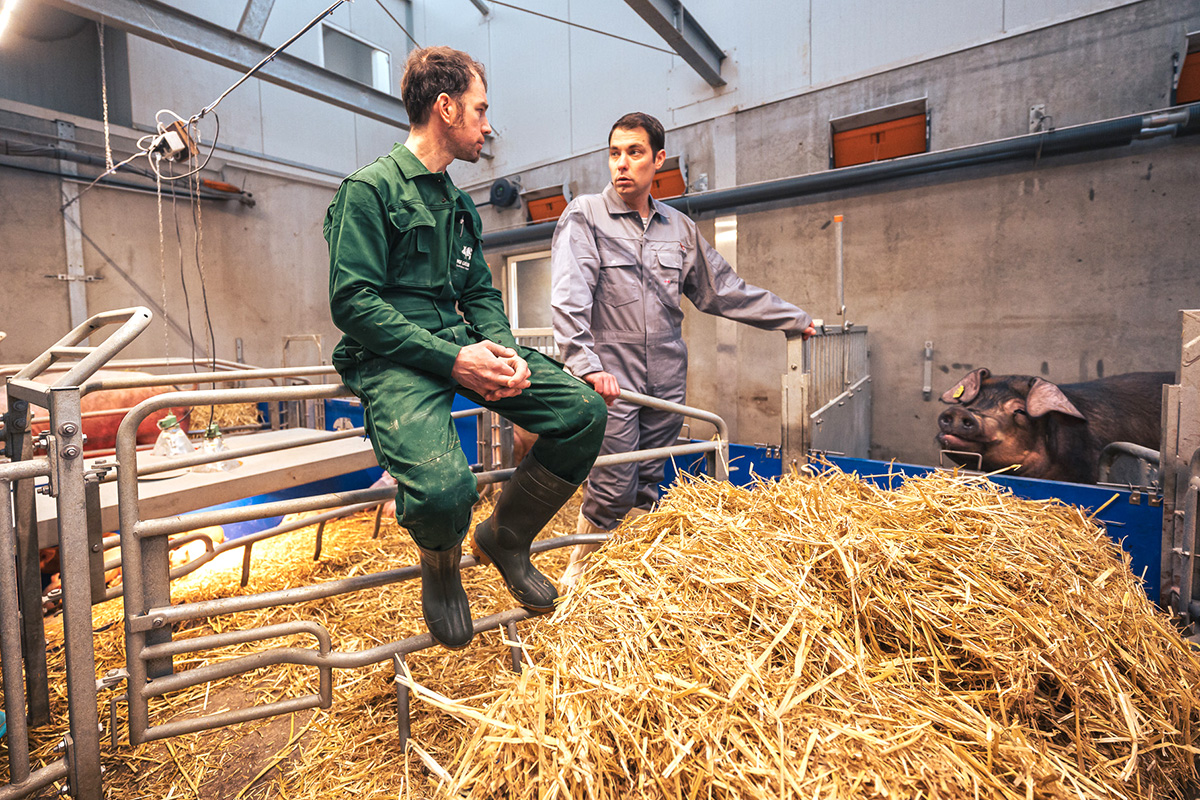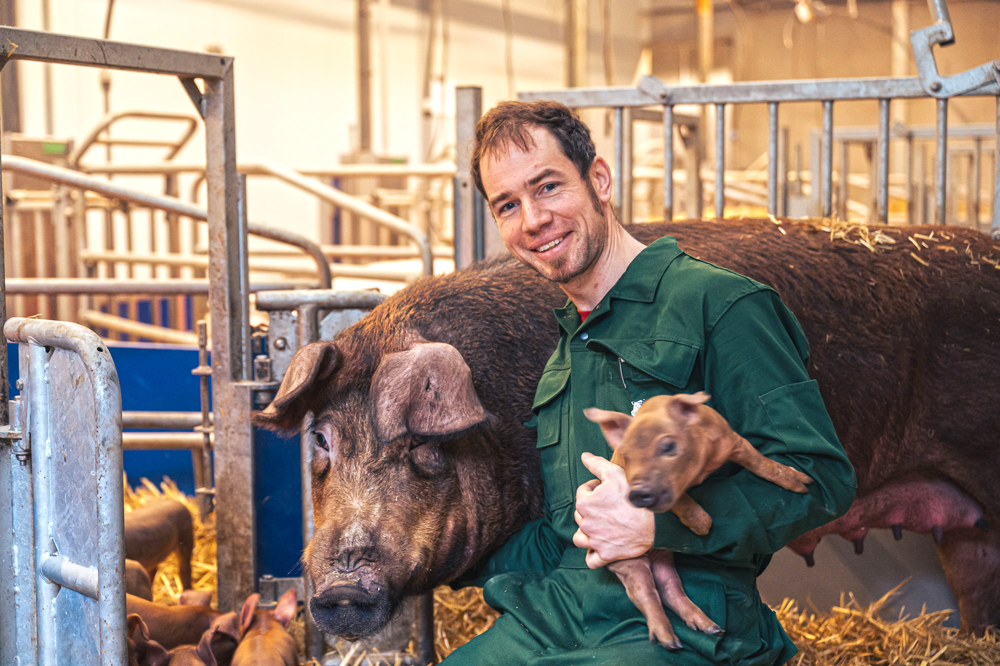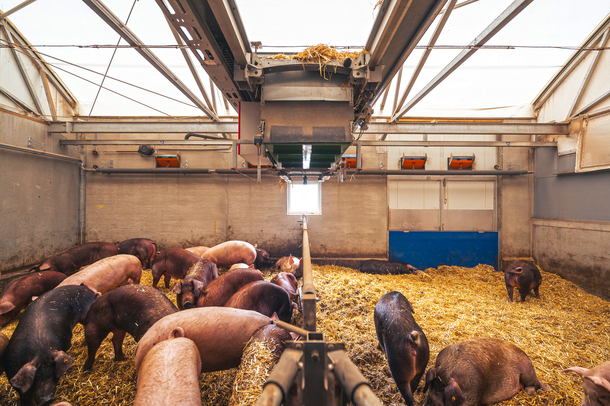 Die Haltung wurde angepasst: Im großen, neuen Strohstallsystem freuen sich die Durocs über ein privilegiertes Leben, in dem sie ihren natürlichen Trieben nachgehen können. Dafür hat Familie Grösbrink viel investiert – und ist überzeugt, dass sich diese Investition rentiert – für Schwein und Mensch.