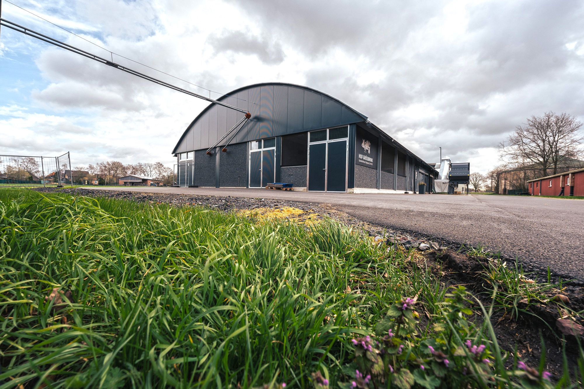 Der geschlossene Stall bekommt ein Rundbogen-Dach, um den Schweinen einen Außenklimareiz und eine natürliche Lichtquelle zu bieten. Durch die Verbesserungsgenehmigung musste dann aber auch am Bestandstall ein Abluftwäscher integriert werden. So werden insgesamt weniger Emissionen freigesetzt als vorher. Das ist für das Dorf und die ganze Umgebung von großem Vorteil. Der Stall ist ITW zertifiziert und nutzt Heu und Stroh.