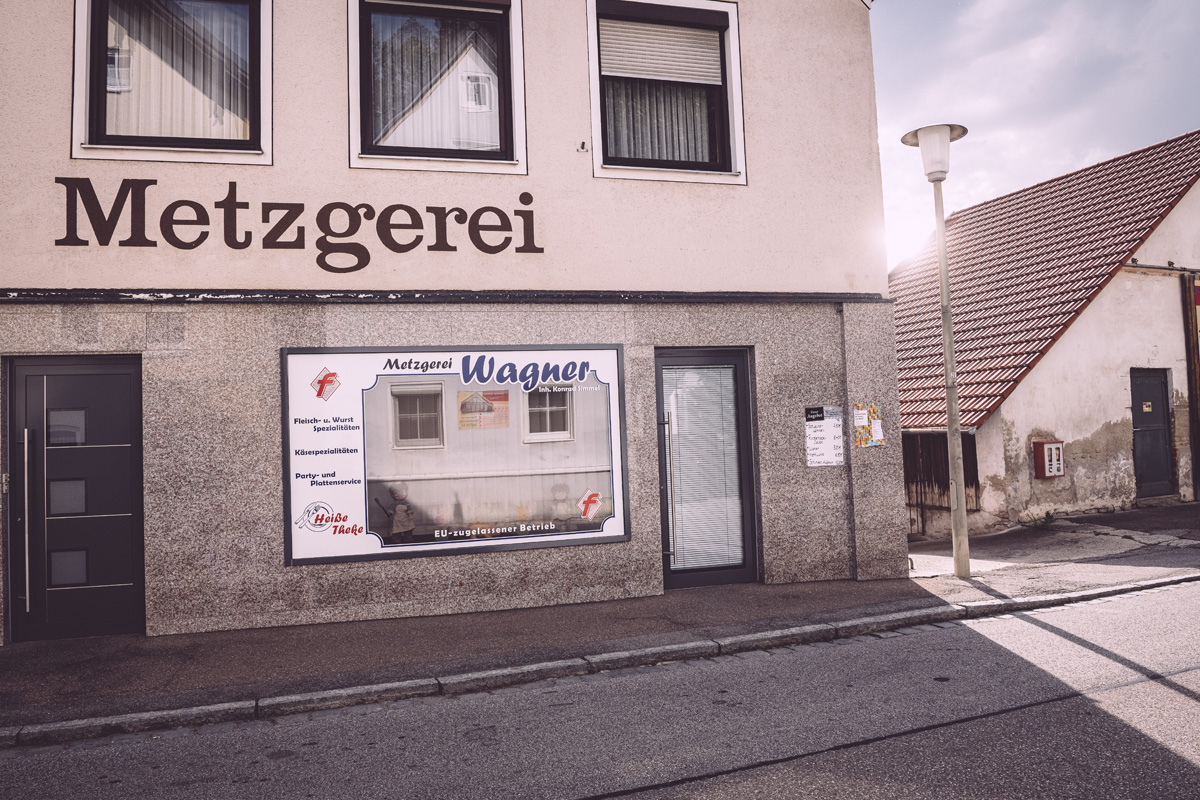 Andreas Simmel betreibt die Metzgerei Wagner in Pfeffenhausen. Wenn man nicht genau aufpasst, übersieht man diese aber schnell. Eher unscheinbar kommt das Fleischerfachgeschäft daher. Die Schaufenster mit Gardinen zugehängt, vor der zwei kleine Puppen als Fleischer gekleidet stehen. Die eine hat ein Fleischerbeil in der Hand und erinnert ein wenig an Chucky, die Mörderpuppe. „Ach, die stehen da schon immer“, erzählt uns Andi. Für geschäftsschädigend hält er diese skurrile Deko anscheinend nicht. Es scheint ihm auch irgendwie egal zu sein. Kann es auch, denn der Laden läuft.